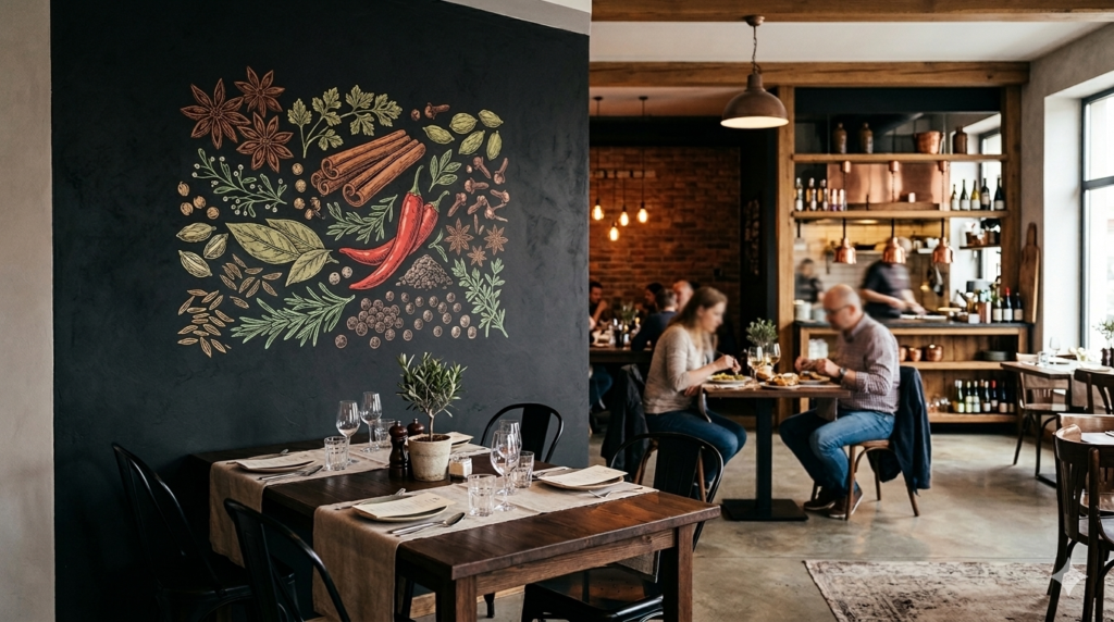 Efektowny nadruk na ścianie tworzy unikalną atmosferę i wprowadza stylowy akcent do wnętrza. Idealny do restauracji, barów i przestrzeni gastronomicznych, które chcą wyróżnić się wizualnie.